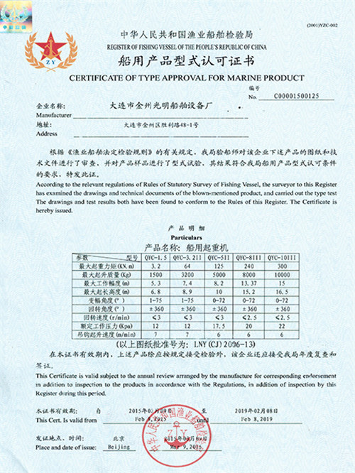 RS船用產品證書(吊機)