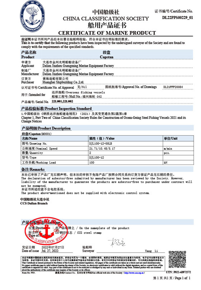 RS船用產品證書(吊機)