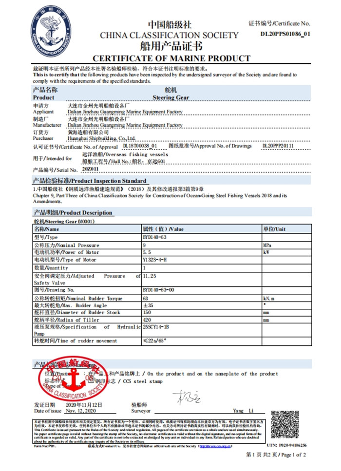 CCS船用產品證書(絞車)
